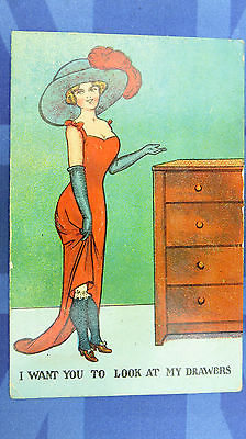 Vintage Risque Comic Postcard 1900s Blue Stockings Drawers Antique Furniture