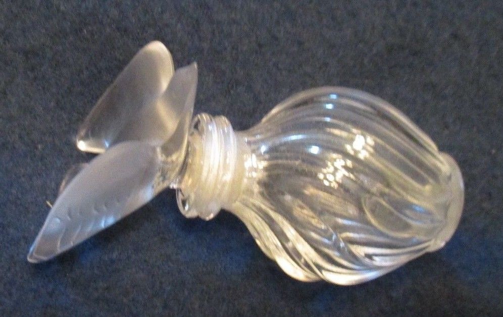 Vintage Empty Lalique Perfume Bottle With Bird Stopper 3" Tall