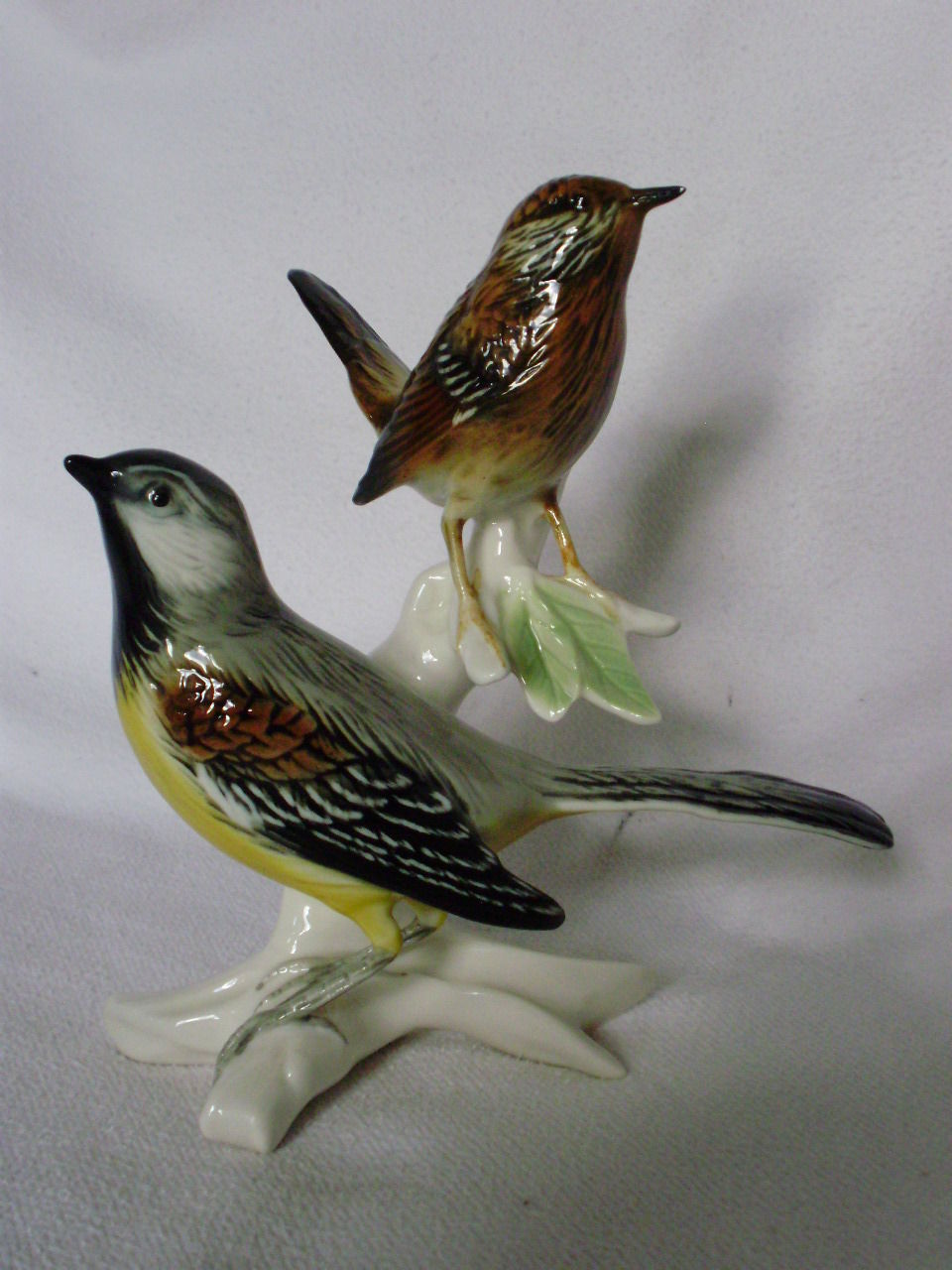 Grey wagtail Eurasian wren Group Passerine Bird Porcelain Figurine Ens German