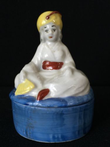 3" Antique German Porcelain Arabian Figural Trinket Box Inkwell