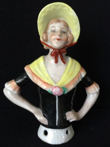 Title (ebay affiliate link): 4" Antique German Colonial Lady Half Doll Pincushion Figure Arms Away/Returning