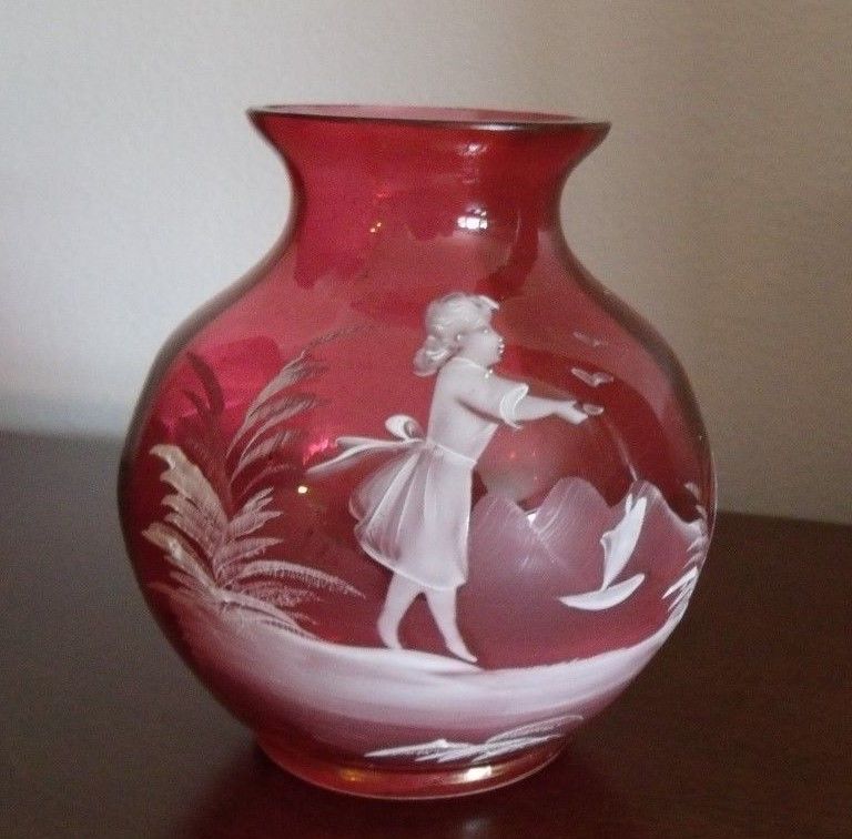 Mary Gregory Cranberry Small Vase with Girl and Butterflies