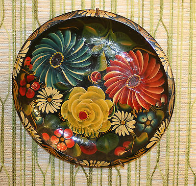 Title (ebay affiliate link): Old Antique Black Hand Painted Round Wood Plate/Dish - floral pattern - 10.5"