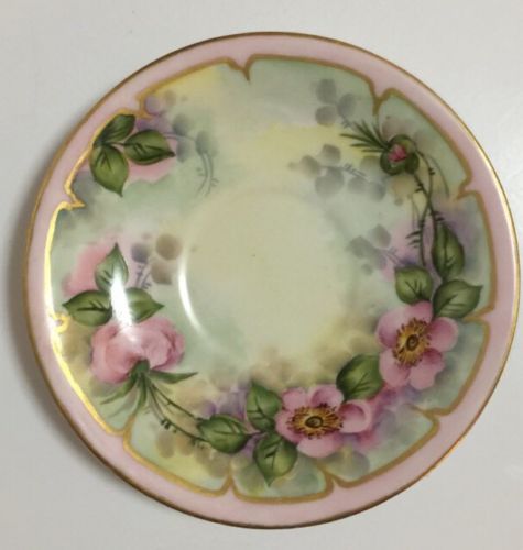Vintage Weimer Germany Saucer Plate Gold Rimmed Pink/White