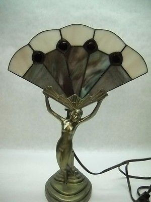 Title (ebay affiliate link): Chandler LAMP of Nude WOMAN ON STEPS with Arms up Holding PURPLE STAINED