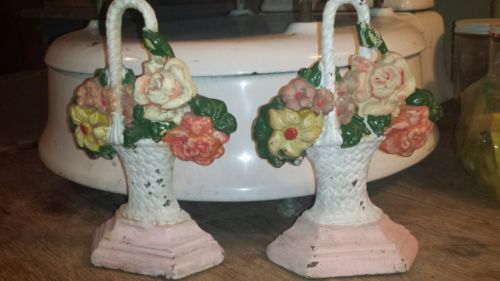 Antique Hubley Cast Iron Flower Basket Bookends Door Stops