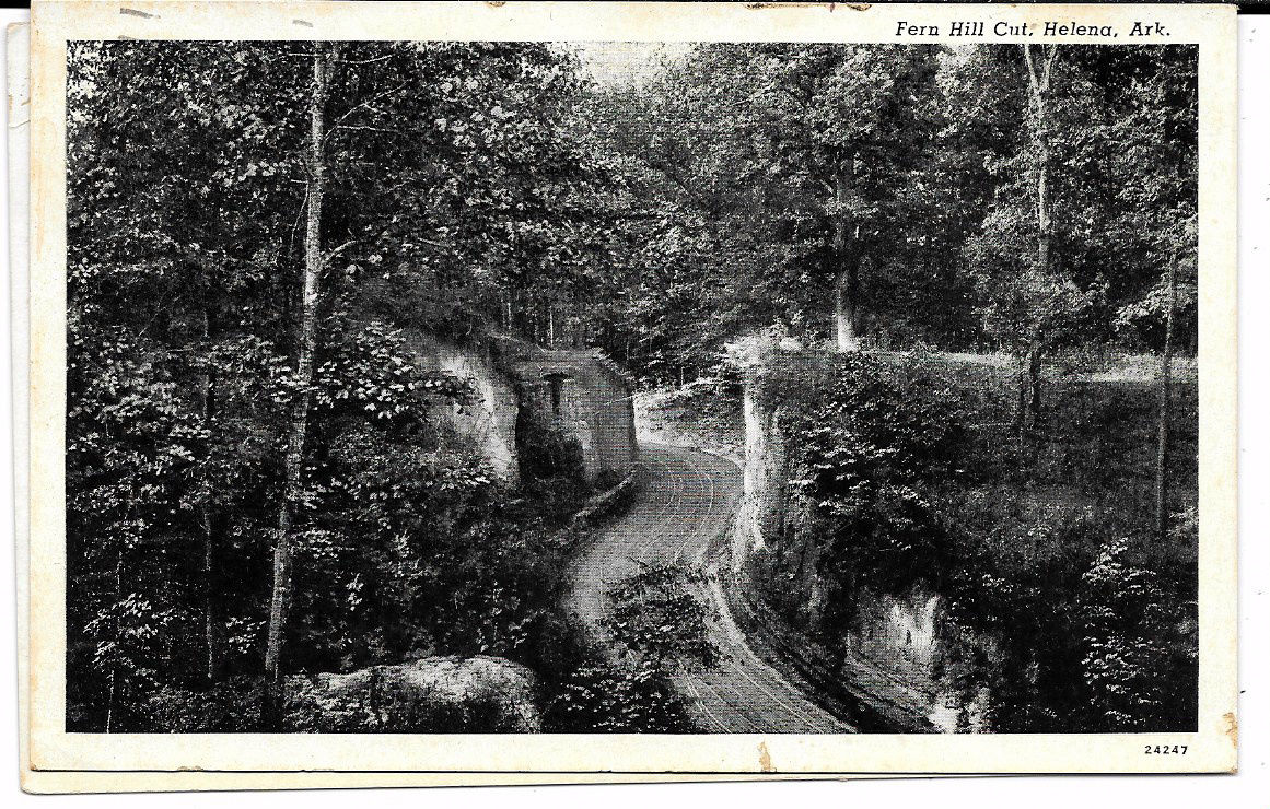 Title (ebay affiliate link): 1943 ARKANSAS CURTEICH PHOTO POSTCARD: VIEW OF FERN HILL CUT, HELENA, ARK