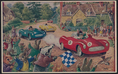 k544) THE MOTOR RACE - By RACY HELPS - MEDICI SOCIETY LONDON POSTCARD 1968