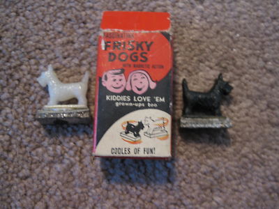 Vintage Hong Kong Frisky Magnet Blk & Wht Dogs in BOX