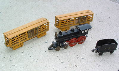 Title (ebay affiliate link): LATE 1800s OR EARLY 1900s CAST IRON STEAM ENGINE TRAIN WITH TENDER AND CARS
