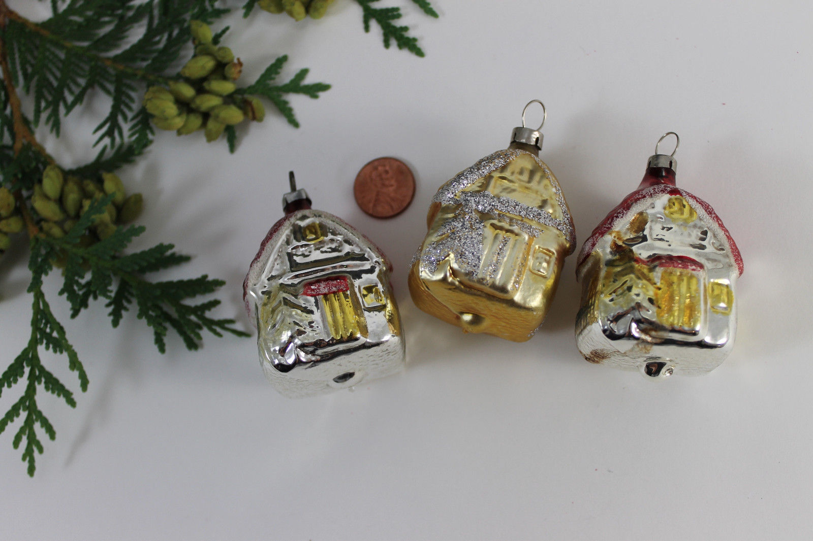 3 Vintage Mercury Glass House Christmas Ornament-German & Czech