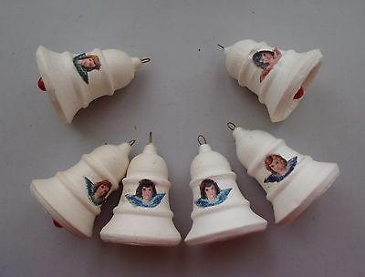 LOT OF 6 VINTAGE SPUN COTTON BELLS WITH ANGELS CHRISTMAS ORNAMENTS