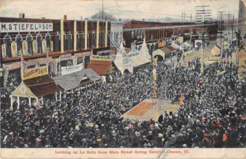 Ottawa Illinois Main Street during Carnival Antique Postcard J52561