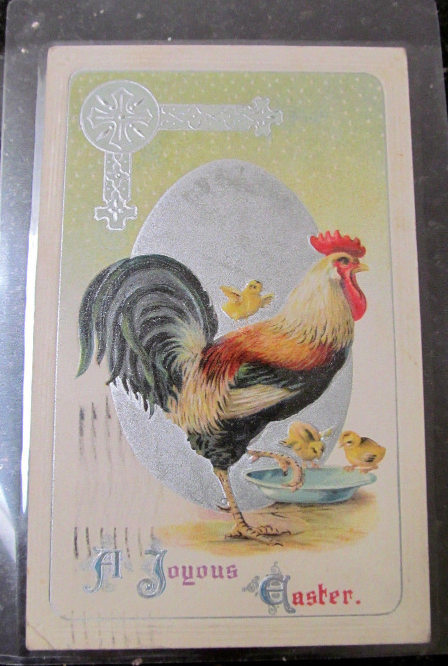 Title (ebay affiliate link): RARE 1913 ANTIQUE EASTER ROOSTER & BABY CHICKS CHICKEN EMBOSSED DIVIDED POSTCARD