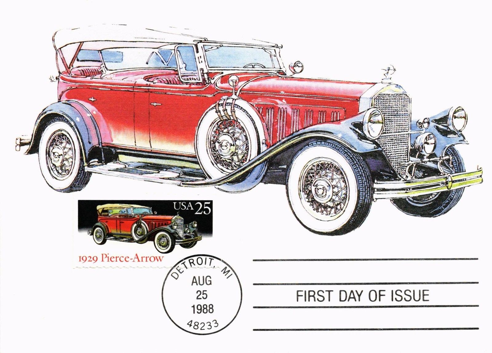Title (ebay affiliate link): DR JIM STAMPS US PIERCE-ARROW ANTIQUE CAR FDC OVERSIZE POSTCARD 1988