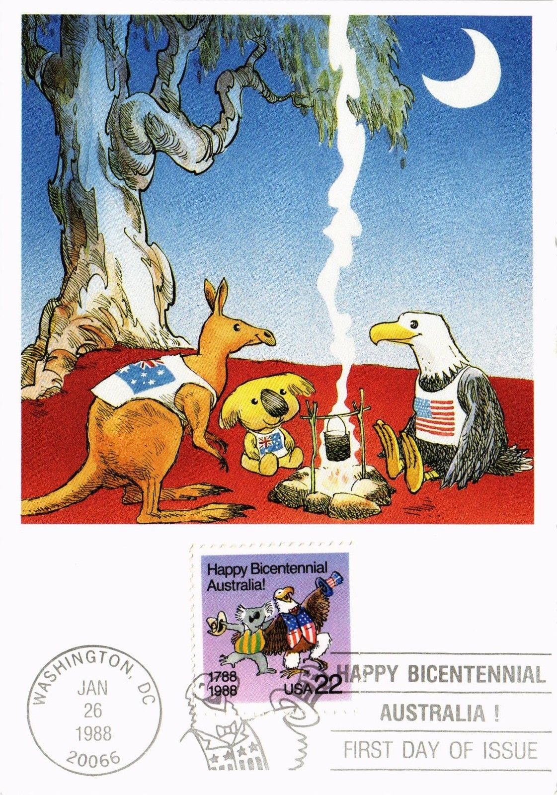 DR JIM STAMPS US HAPPY BICENTENNIAL AUSTRALIA FDC OVERSIZE POSTCARD 1988