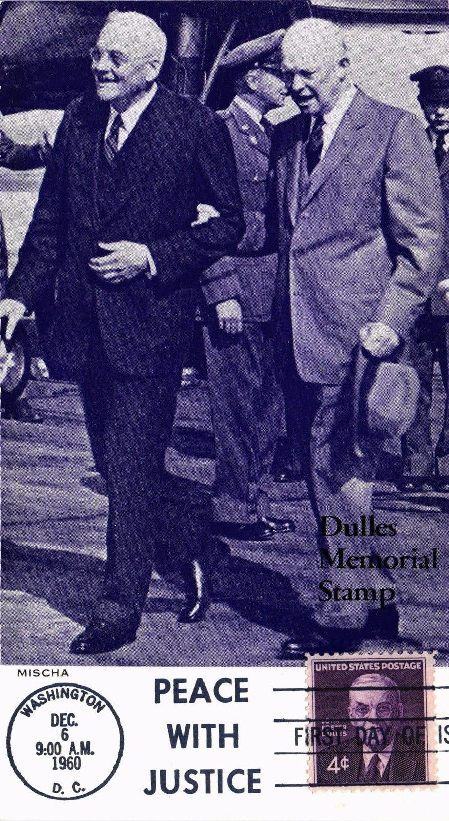 Title (ebay affiliate link): DR JIM STAMPS US PEACE WITH JUSTICE DULLES FDC OVERSIZE POSTCARD 1960