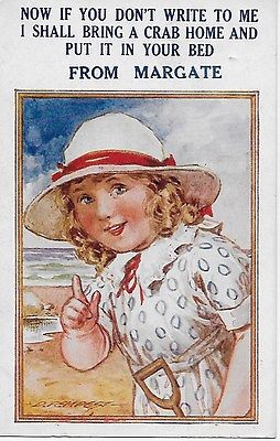 Title (ebay affiliate link): Bamforth Seaside Comic 1274 Now if you don't write to me I shall bring a crab