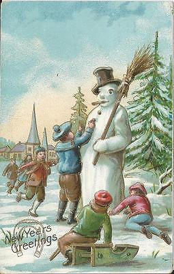 Title (ebay affiliate link): Happy New Year - Lucky Horseshoe - Children making a snowman