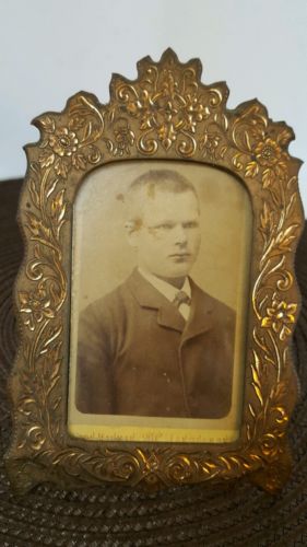 Title (ebay affiliate link): Antique Victorian Brass Copper Tone Metal Picture Frame Easel Back Floral