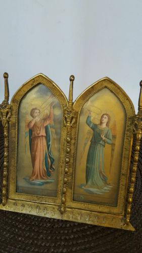Title (ebay affiliate link): Antique Victorian Gold Metal Picture Frame Easel Back Religious Musical Angels