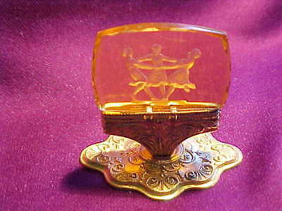 Title (ebay affiliate link): Intaglio Place Card Holder "Three Girls Dancing" Beveled Amber Glass