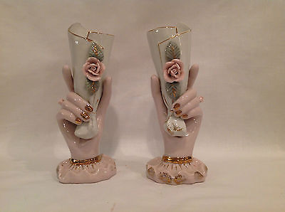 1950s Vintage Pair of Ceramic Hands Vases LOVELY