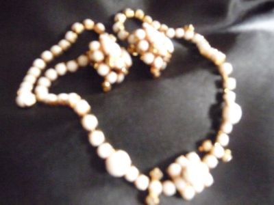 Gorgeous Milk Glass & Rhinestone Necklace Earrings