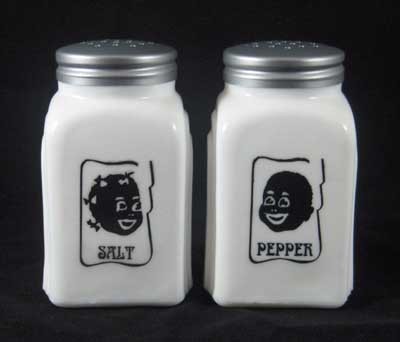MILK GLASS BLACK AMERICANA SAMBO S & P SHAKERS