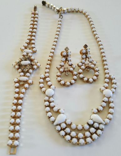 Title (ebay affiliate link): Stunning Vintage Milk Glass Bead & Rhinestone Necklace Bracelet & Earrings Set !