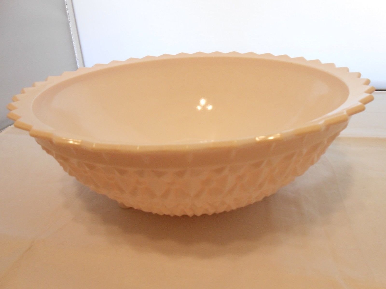 Title (ebay affiliate link): Beautiful Vintage Jeanette Shell PINK Milk Glass LARGE Footed Console Bowl