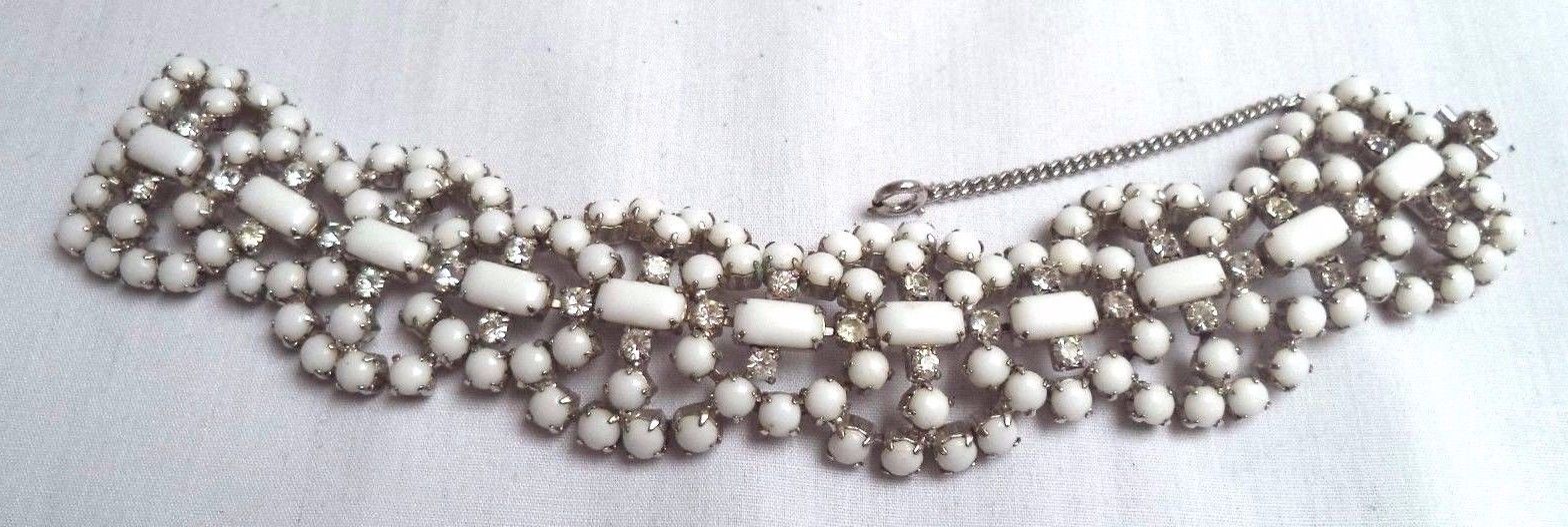 Title (ebay affiliate link): STUNNING VINTAGE ESTATE HIGH END RHINESTONE & MILK GLASS BRACELET!!! G4369