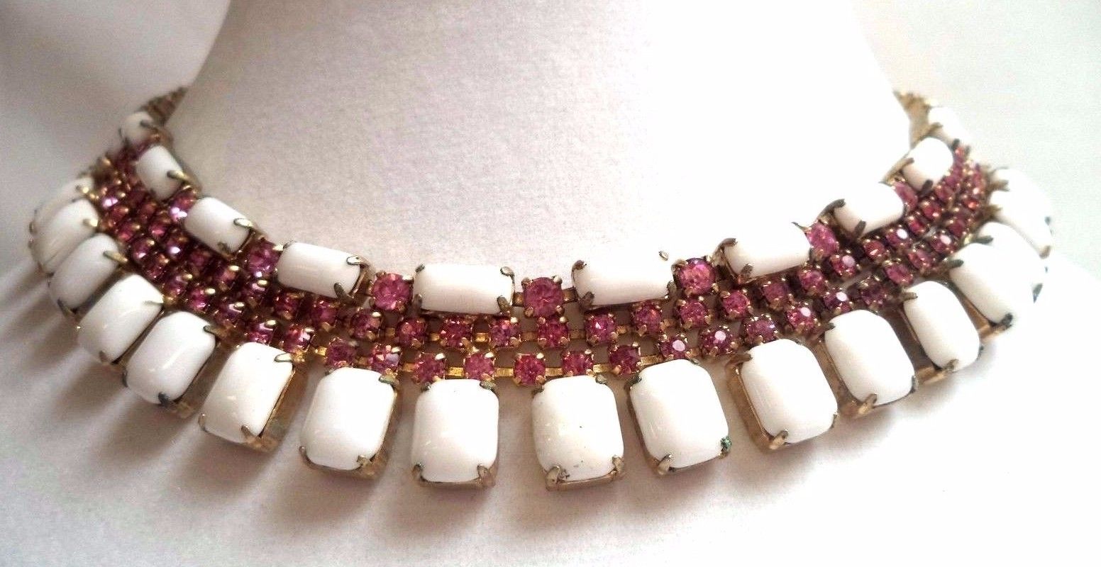 Title (ebay affiliate link): STUNNING VINTAGE ESTATE HIGH END PINK RHINESTONE & MILK GLASS NECKLACE!!! G4382