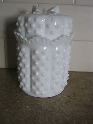Fenton Milk Glass Hobnail Ruffled Butterfly Finial Covered Jar Jam Candy Box