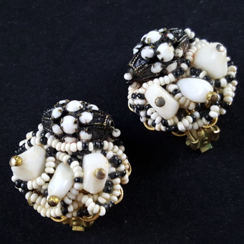 Title (ebay affiliate link): Unsigned Designer Vintage Clip Earring Cluster Bead Milk Glass Flower Twist J71