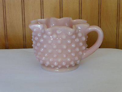 VINTAGE FENTON ART GLASS ROSE PASTEL PINK HOBNAIL STAR CREAMER MILK GLASS