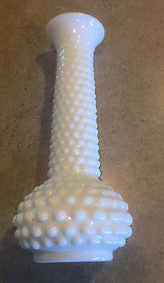 VINTAGE WHITE HOBNAIL MILK GLASS BUD VASE. 8 INCHES