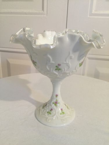 Fenton Art Milk Glass Hand Painted Vase 7" X 6"