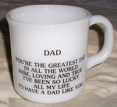 vintage Anchor Hocking milk glass cup mug DAD w/ VERSE