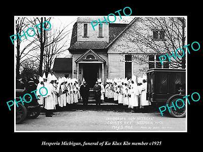 OLD LARGE HISTORIC PHOTO HESPERIS MICHIGAN, THE KU KLUX KLAN FUNERAL c1925