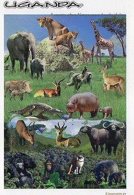 Title (ebay affiliate link): postcard of WILDLIFE UGANDA - CROCODILE ELEPHANT HIPPO WARTHOG GORILLA