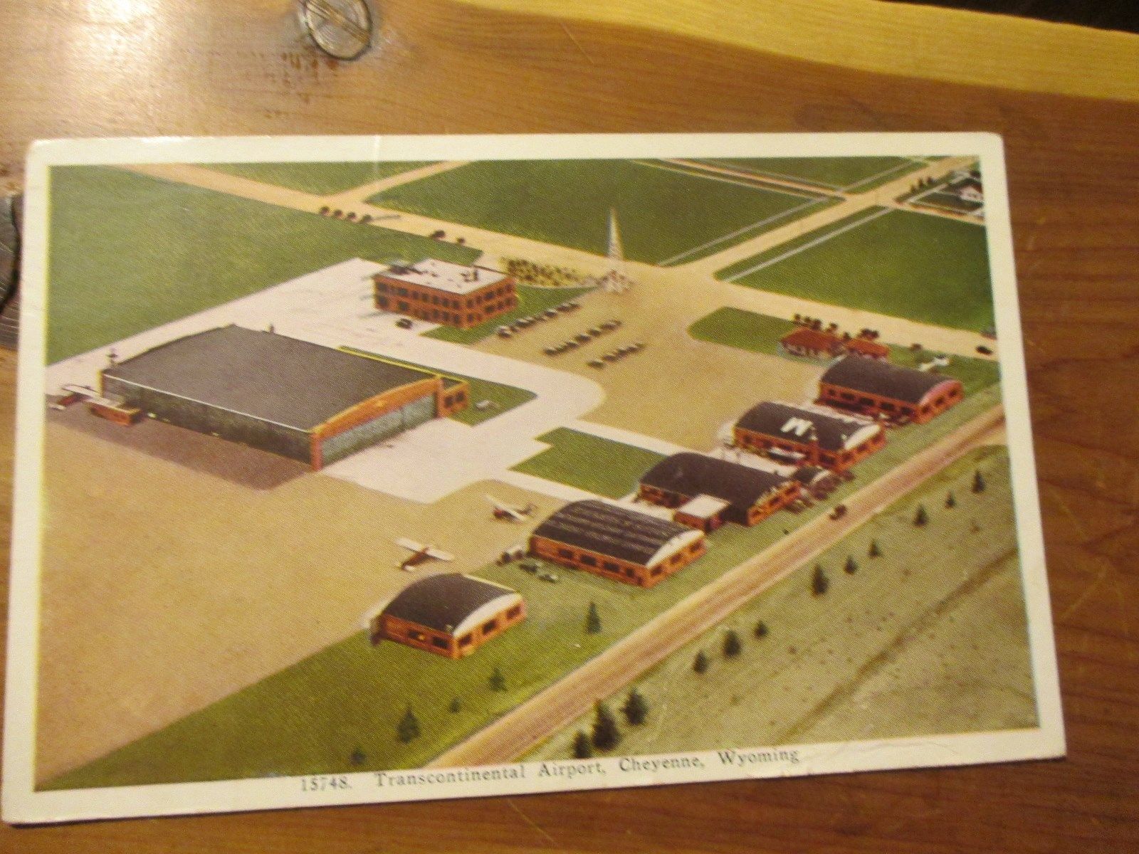 Title (ebay affiliate link): CHEYENNE WY TRANSCONTINENTAL AIRPORT AERIAL VIEW-POSTED 1937