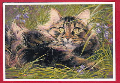 Title (ebay affiliate link): Rest cat among the flowers and grass artist Lucie Bilodeau Cat
