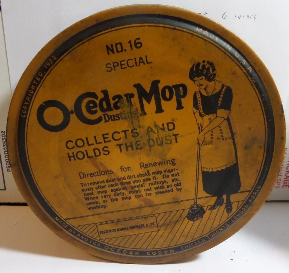 Title (ebay affiliate link): VINTAGE RARE O-CEDAR MOP METAL TIN CAN HANDY OILER OIL GAS STATION MEMORIABILIA