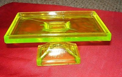 Title (ebay affiliate link): Vintage CLARKS Teaberry Gum Yellow Vaseline Glass Display Stand