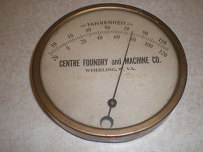 old metal advertising therometer centre foundry and machine co wheeling wv