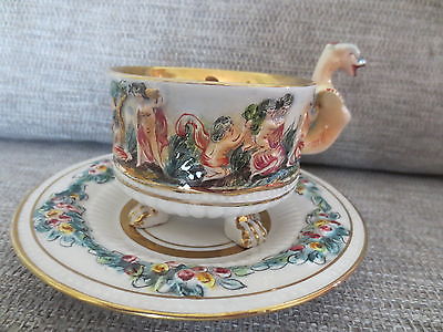Vintage R.CAPODIMONTE 2226-DUO -cup & saucer DEMITASSE-Hand Painted -Italy gc