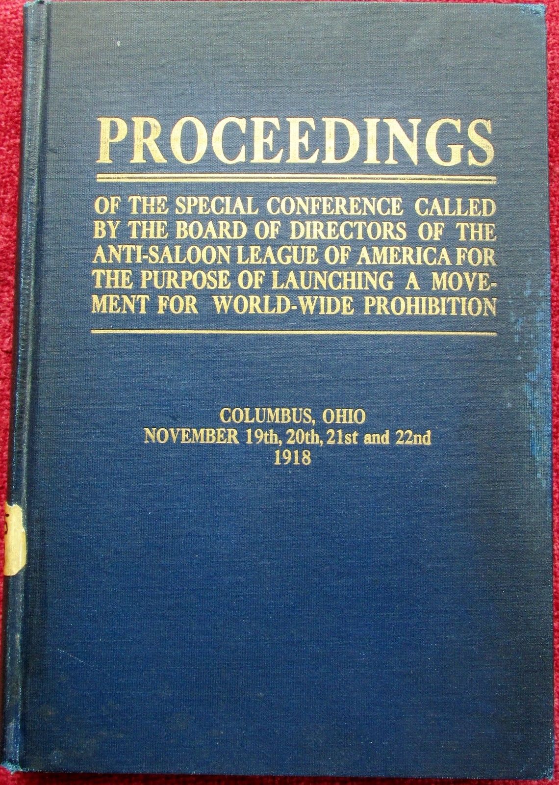 Title (ebay affiliate link): 1918...Proceedings of the Anti-Saloon League...World Wide Prohibition