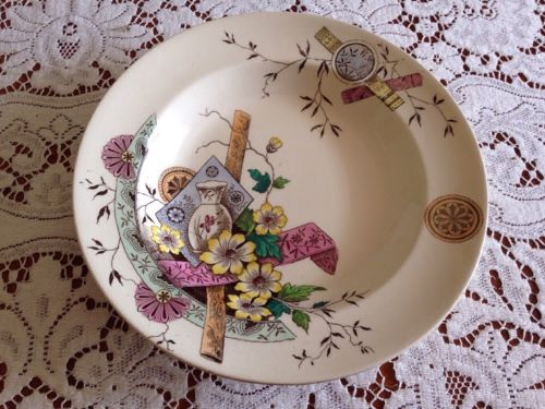 Title (ebay affiliate link): Antique Colorful Transfer Ware Rimmed Soup Plate/Bowl Aesthetic mkd. Saigon J.B.