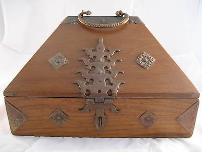 Vintage Antique Wood Copper brass Box velvet lined hinged INDIA 12 inch RARE